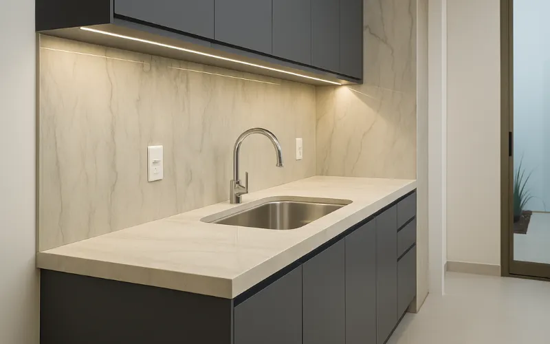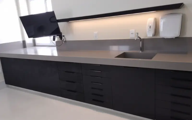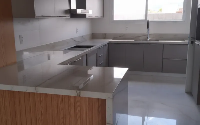 O granito e as pedras sintéticas, como o Quartzo, são as opções mais recomendadas para bancadas de cozinha, pois são altamente resistentes a riscos e manchas. Nossos especialistas podem ajudar a escolher a melhor opção para seu projeto, considerando o uso e o estilo que você busca.