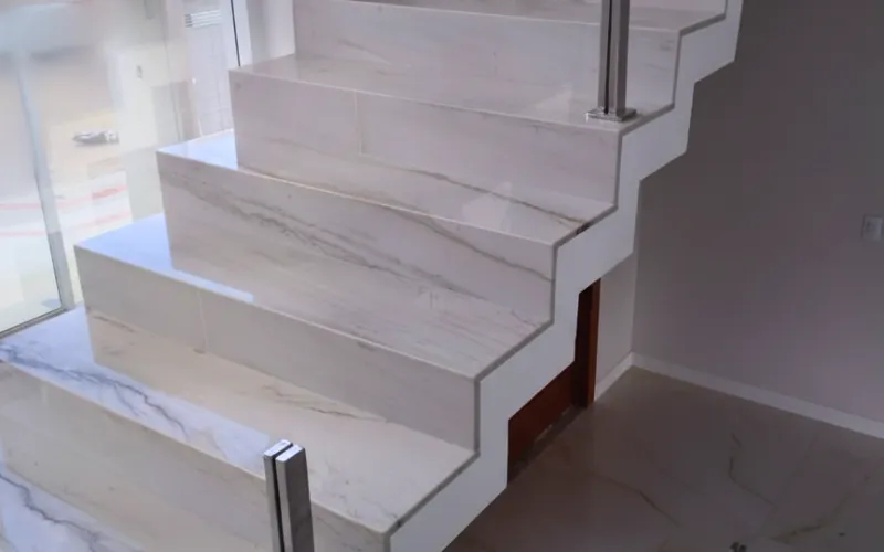 Pisos em grande formato e Escadas personalizadas. A combinação perfeita de durabilidade e design para sua obra.